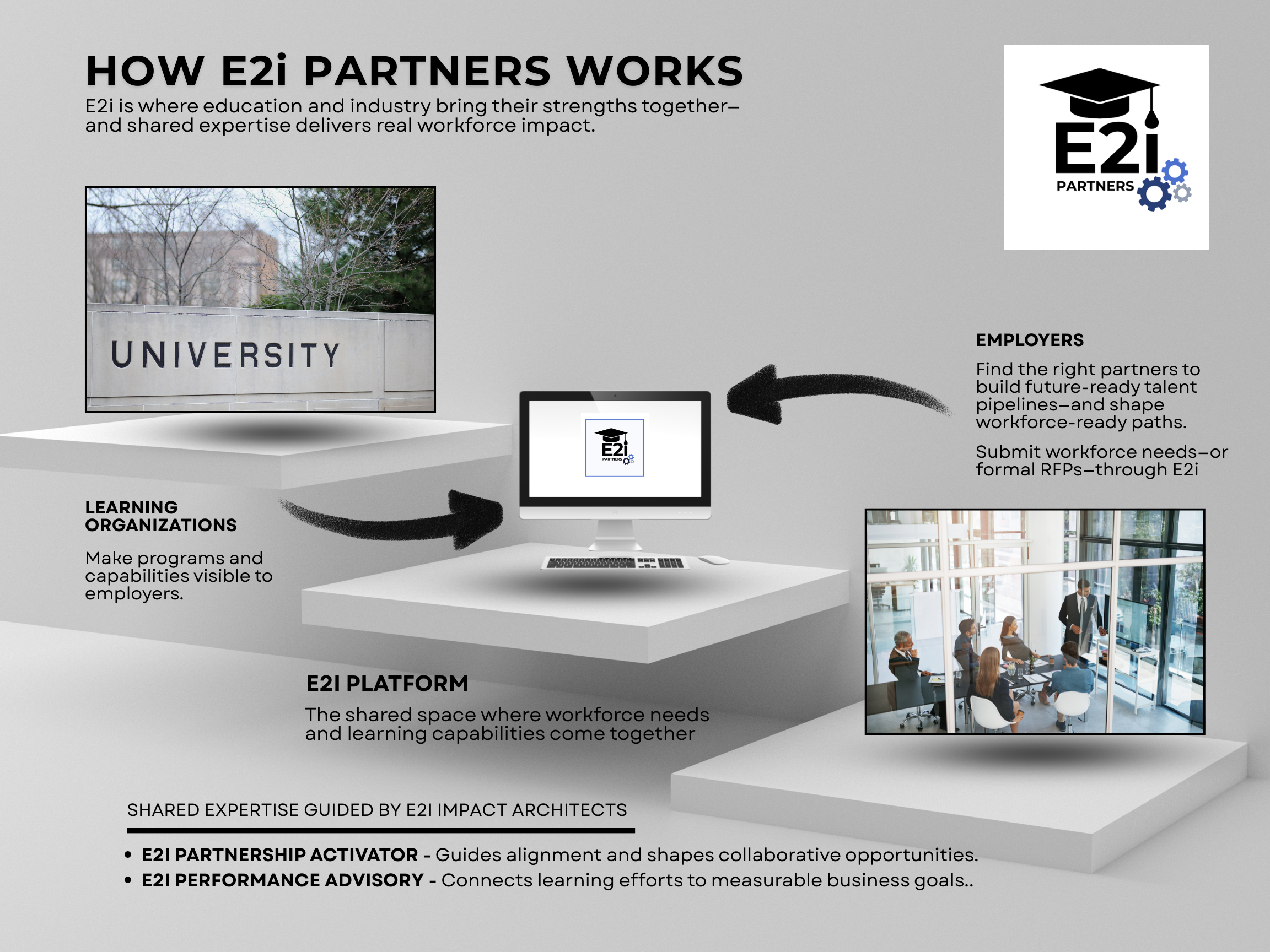 E2i Partners is the connective infrastructure that enables education and industry to co-create the future of work—at scale.